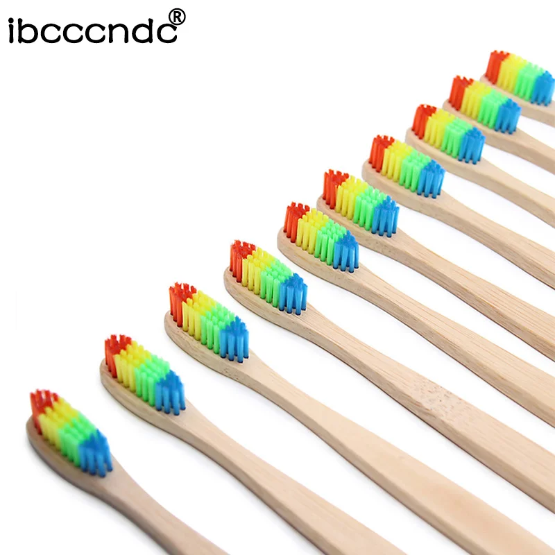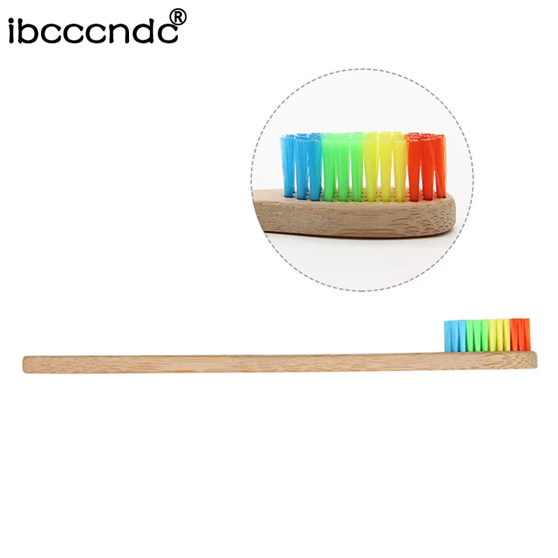 Voucher 1pc New Environmentally friendly Wooden Handle Rainbow Brush BambooToothbrush Oral Care Soft Bristl